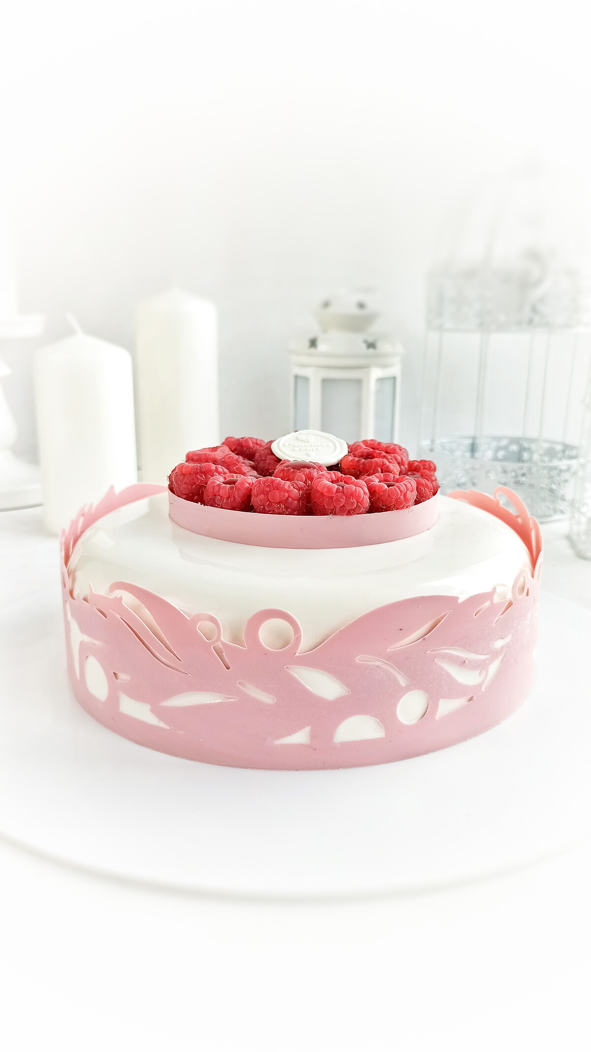 Мусс йогурт, начинка малина-клубника, ягодный слой, бисквит йогурт с пропиткой пуншем с розой на основе чая с жасмином