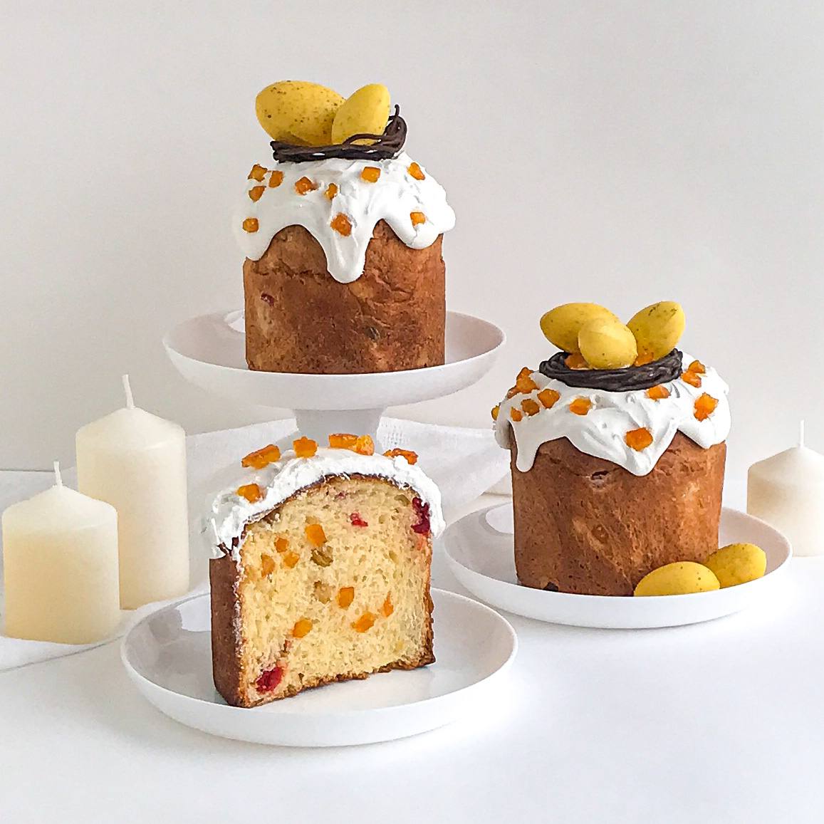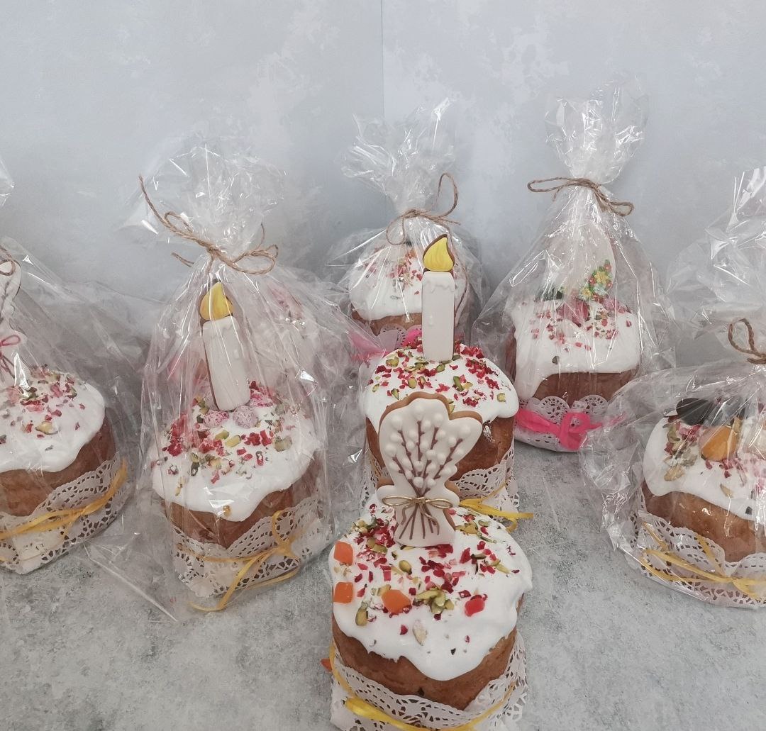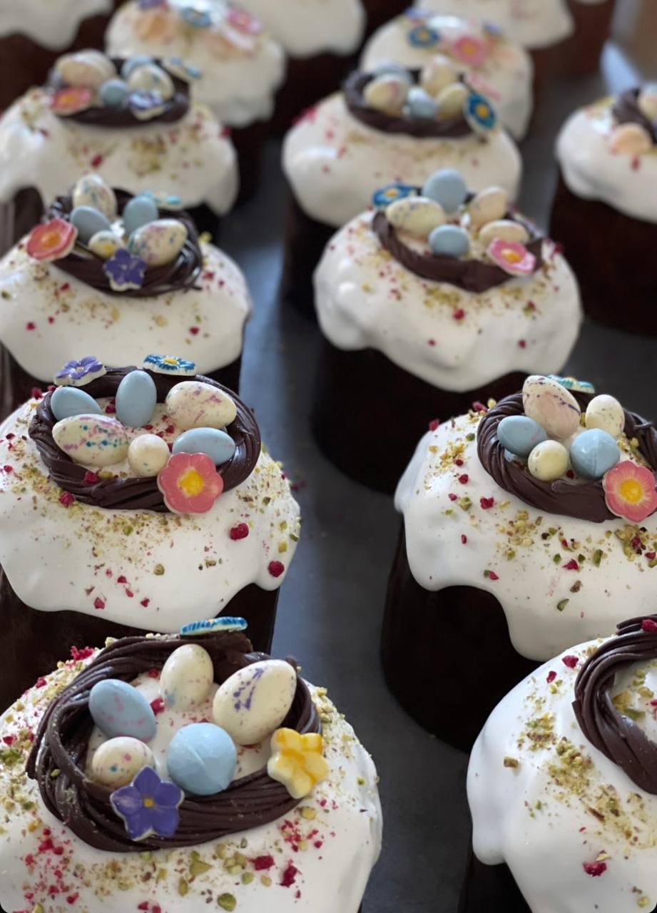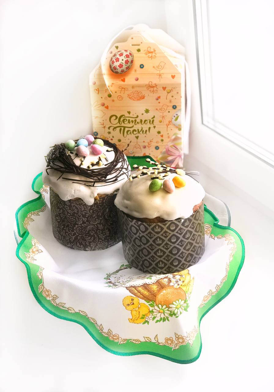 3 авторских кулича: «Шоколадный», «Творожный», «Краффин» и 2 пасхи: «Творожная с ягодами и цукатами», «На топленом твороге»