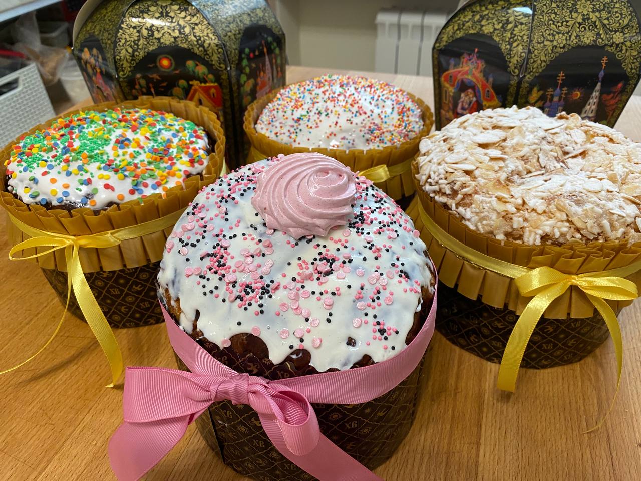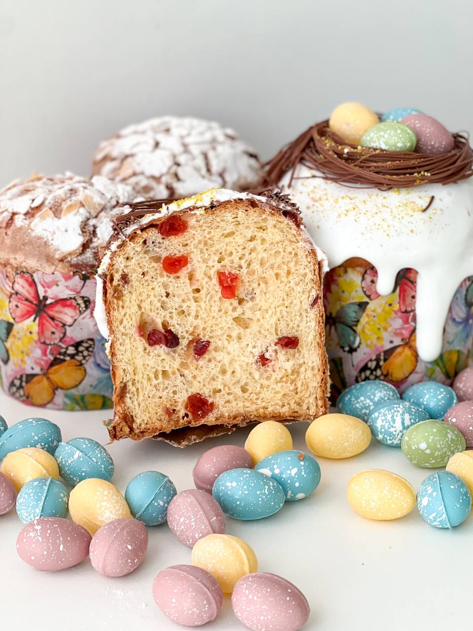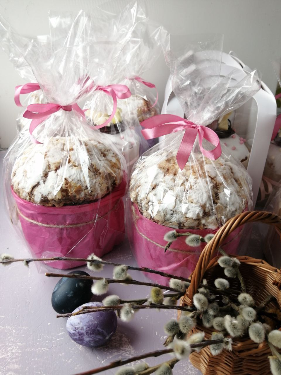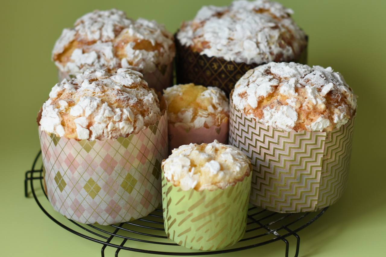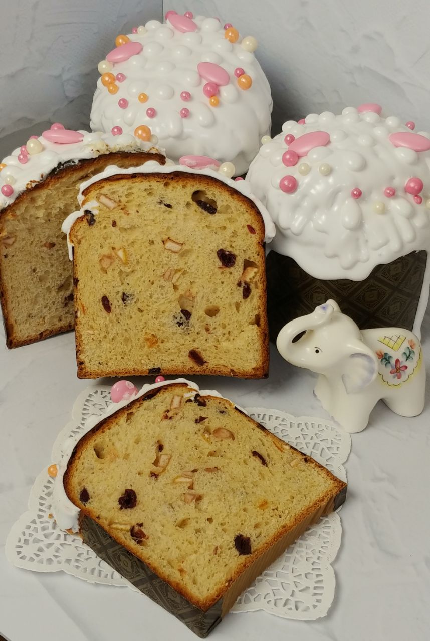 3 авторских кулича: «Шоколадный», «Творожный», «Краффин» и 2 пасхи: «Творожная с ягодами и цукатами», «На топленом твороге»