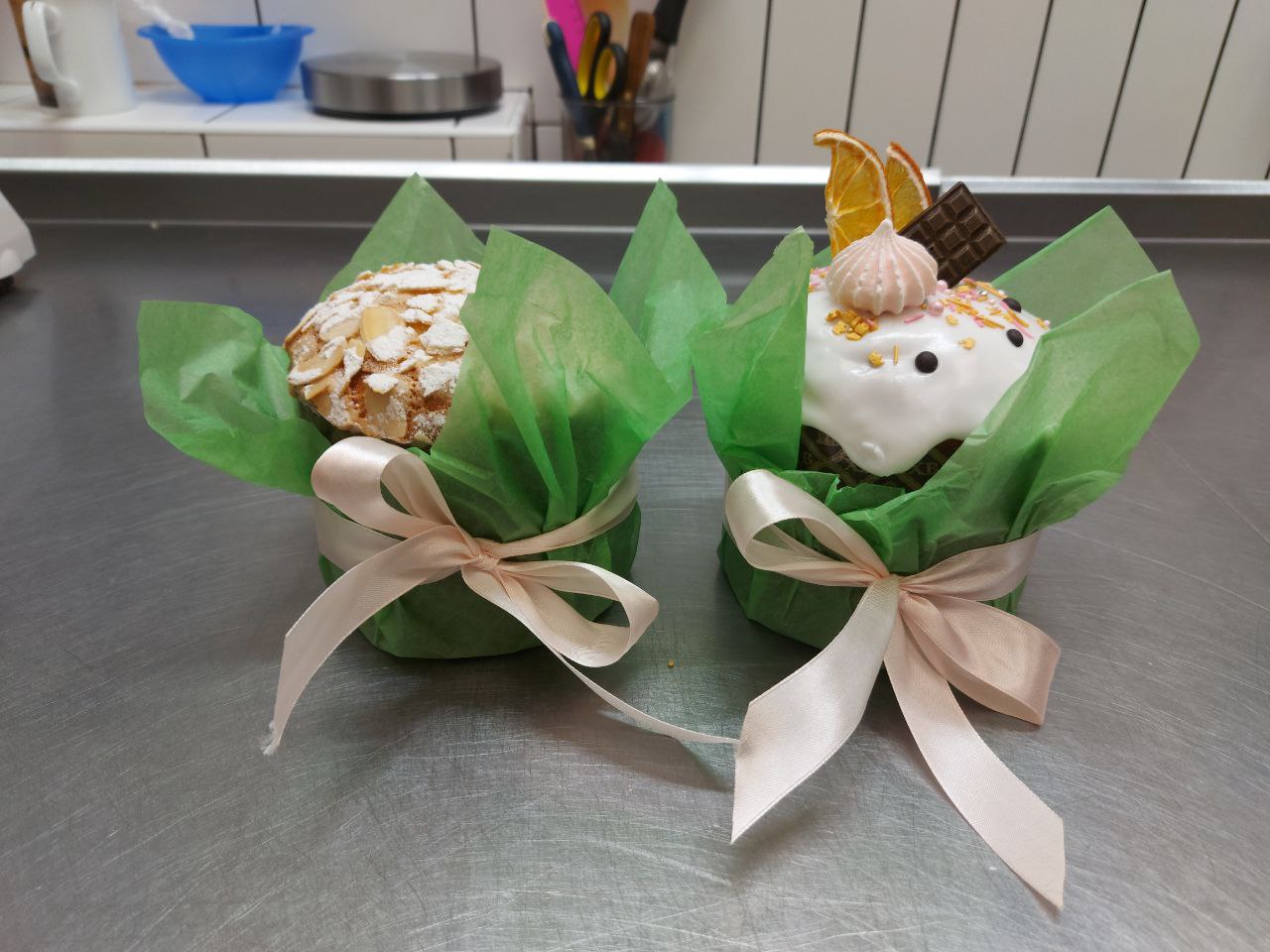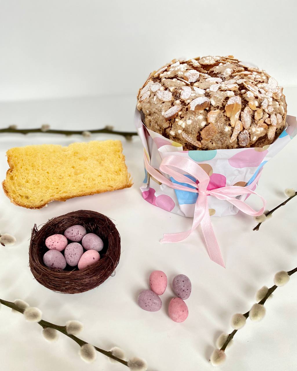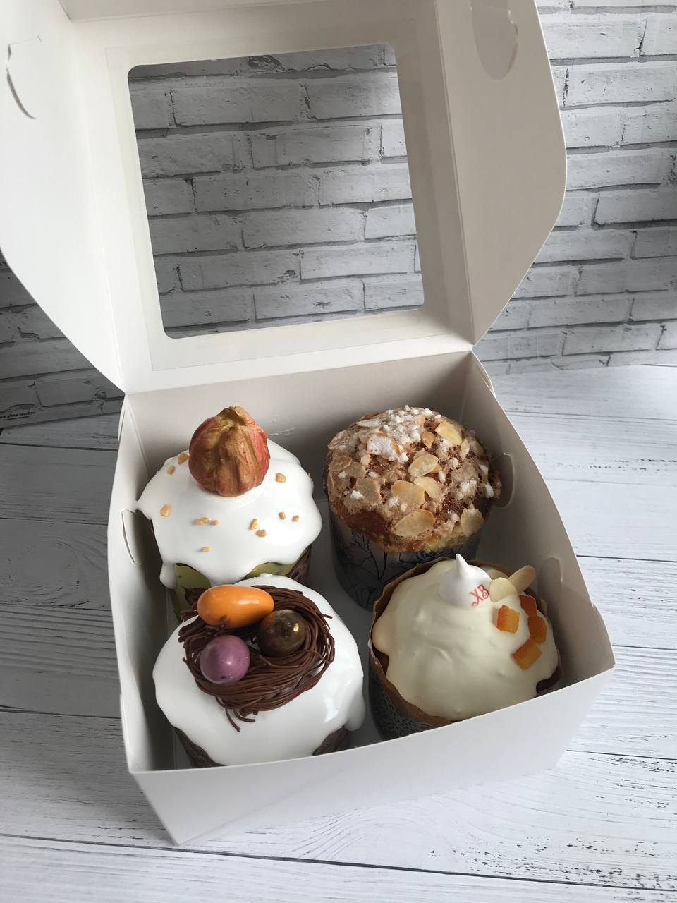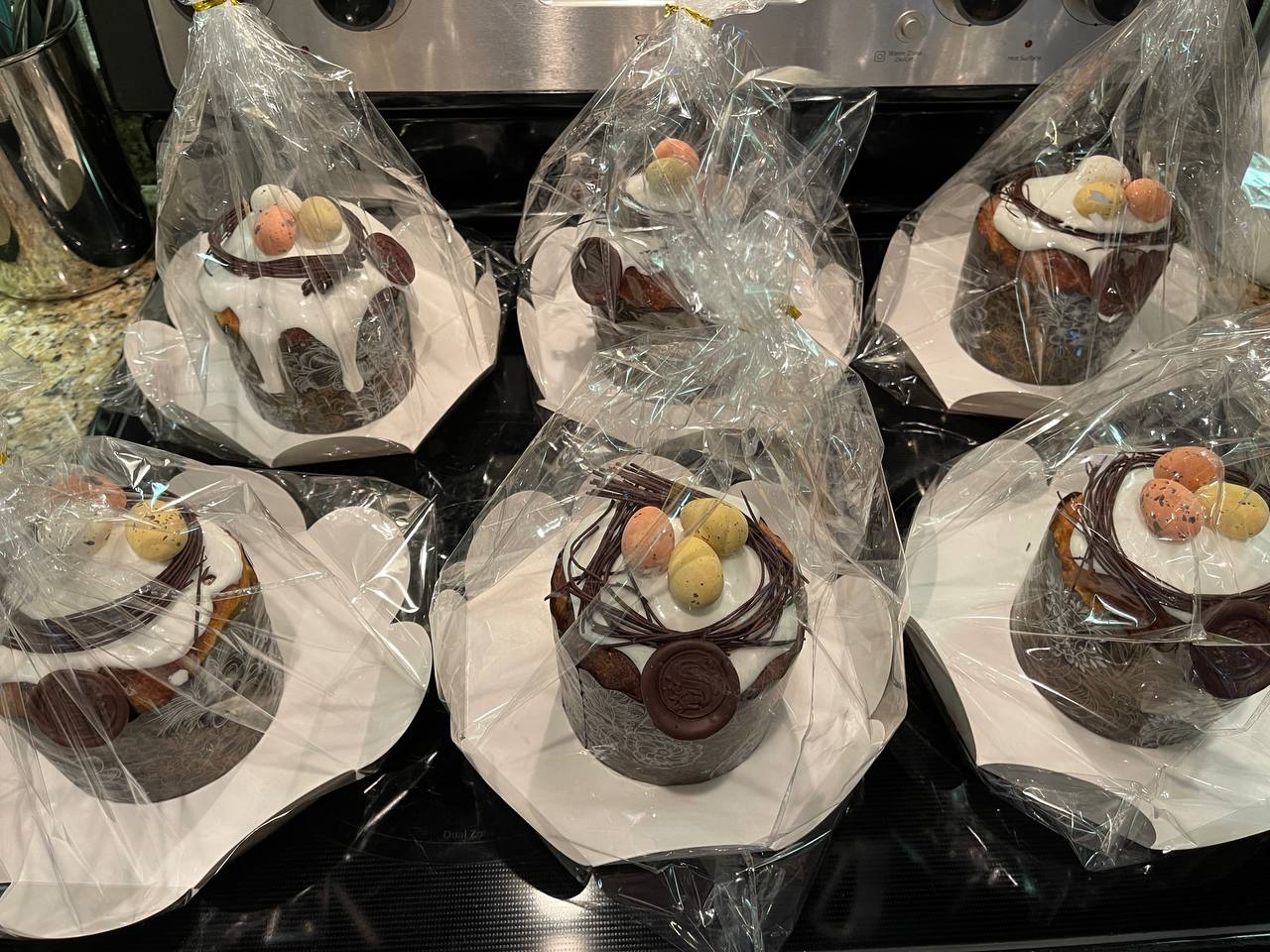 3 авторских кулича: «Шоколадный», «Творожный», «Краффин» и 2 пасхи: «Творожная с ягодами и цукатами», «На топленом твороге»
