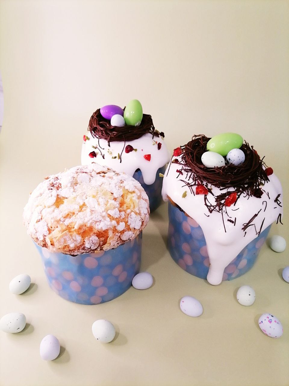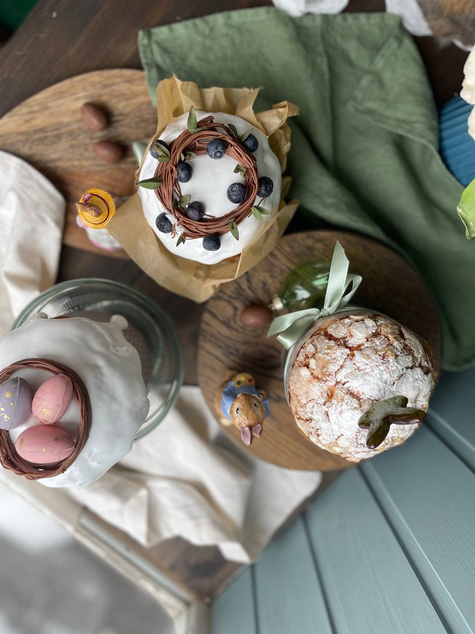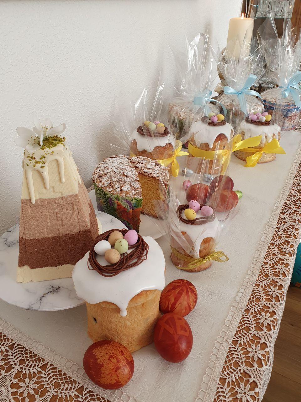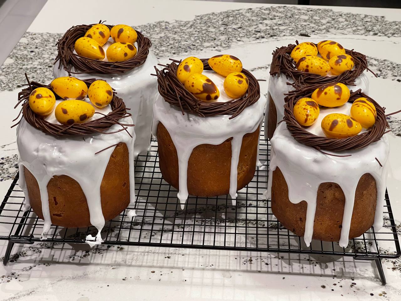 3 авторских кулича: «Шоколадный», «Творожный», «Краффин» и 2 пасхи: «Творожная с ягодами и цукатами», «На топленом твороге»