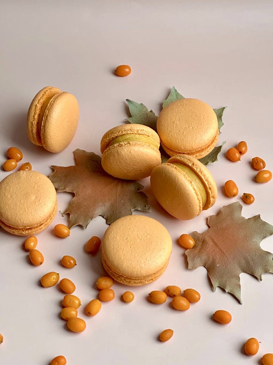 Ганаш облепиховый с розмарином и медом, миндальный макаронад
