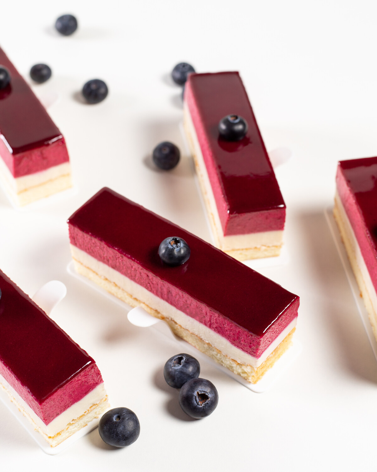 Нарезка муссовых пирожных с глазурью из смородины