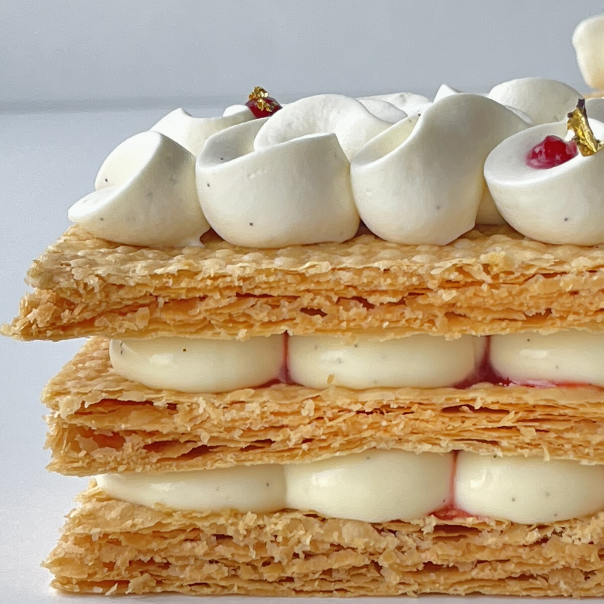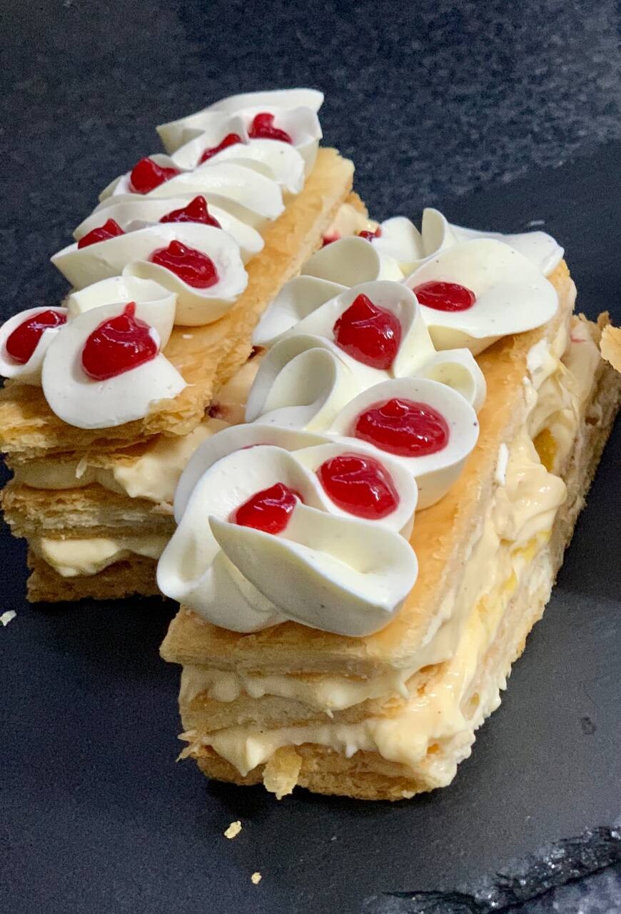 Теория и практика приготовления пресного слоеного теста на примере пирожного «Мильфей» с заварным кремом, ягодной начинкой и ванильным ганашом + ответы на вопросы
